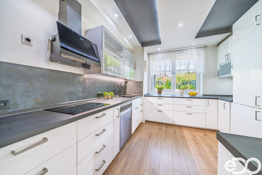 Nabízíme k prodeji elegantní byt o dispozici 3 + kk s podlahovou plochou 83,6 m² a zahradou o velikosti 335 m².