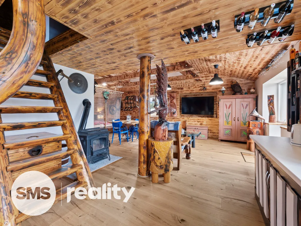 Byt je kompletně obložen kvalitním dřevem opáleným ohněm, které mu dodává atmosféru stylového horského srubu. Dominantou obytného prostoru jsou krbová kamna, která nejen efektivně vytápí celý byt, ale vytváří i jedinečnou atmosféru domova.