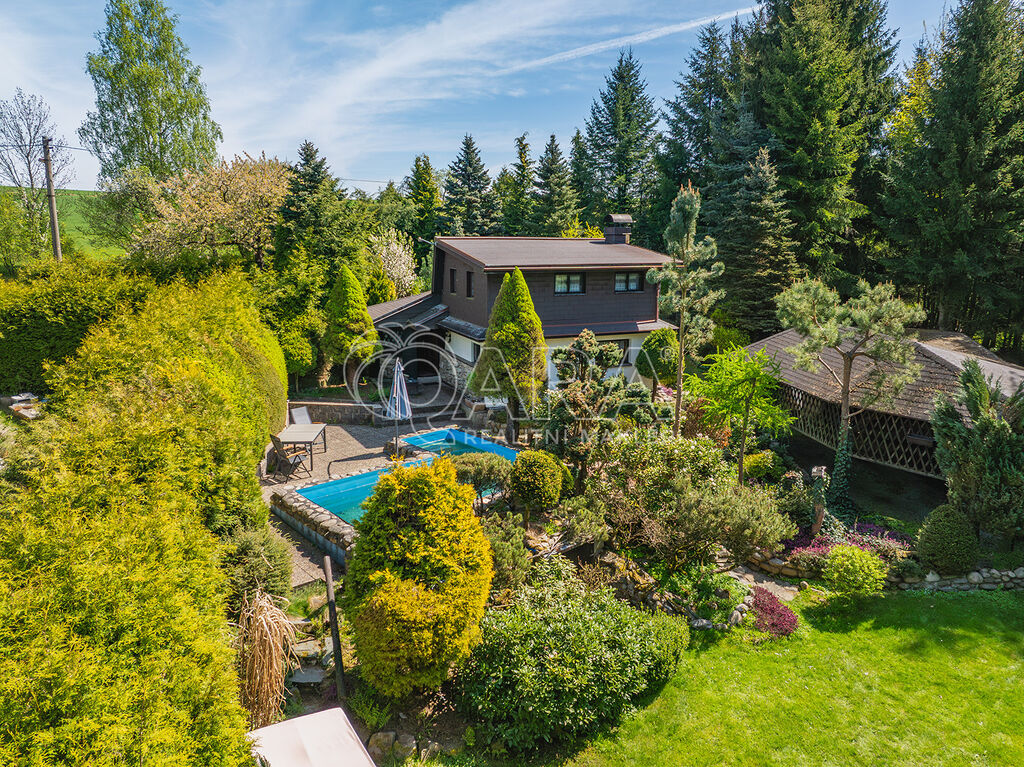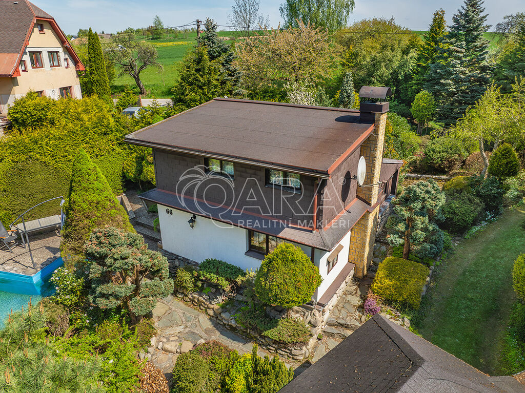 Celková zastavěná plocha domu činí 57 m². Na pozemku se nacházejí dvě garáže o rozloze 23 m² a 36 m², přístřešek pro další auta a samostatný malý domek s názvem „Krakonoš“, který ukrývá krb a jeho využití záleží jen na vaší fantazii.