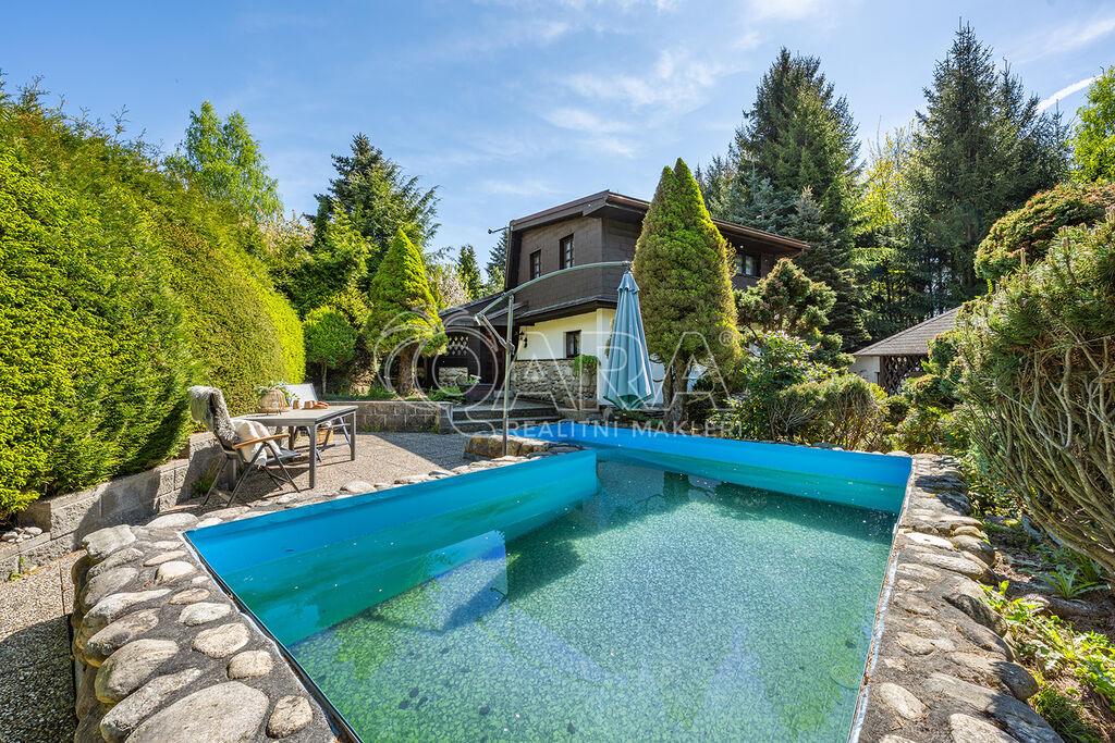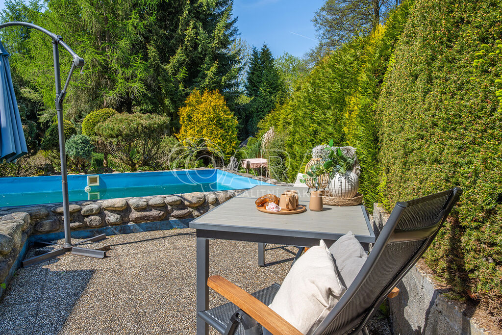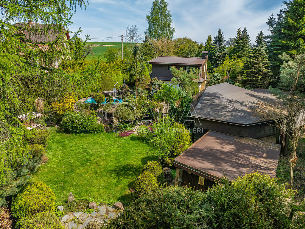 Ale to hlavní teprve přijde a to zahrada. Téměř 1400 m² láskyplně udržovaného pozemku, do kterého majitel vložil kus svého srdce. Vzrostlé dřeviny, jezírko s malým vodopádem, venkovní bazén o rozloze 13 m², sauna, dílna, cestičky, zákoutí i potůček, který protéká kolem pozemku. A co je nejdůležitější, naprosté soukromí, které tato zahrada nabízí.