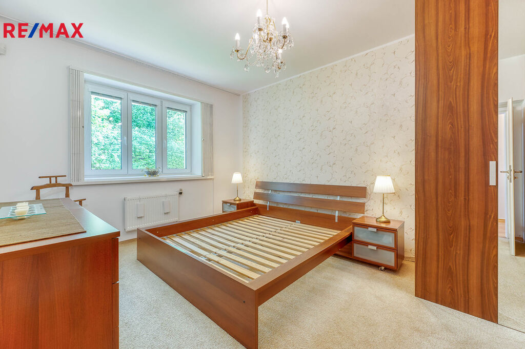 - Dva pokoje (14,9 m² a 21,3 m²) a ložnice (16,5 m²) – vše orientované do soukromé zahrady na jihovýchod, která zajišťuje dostatek světla a soukromí