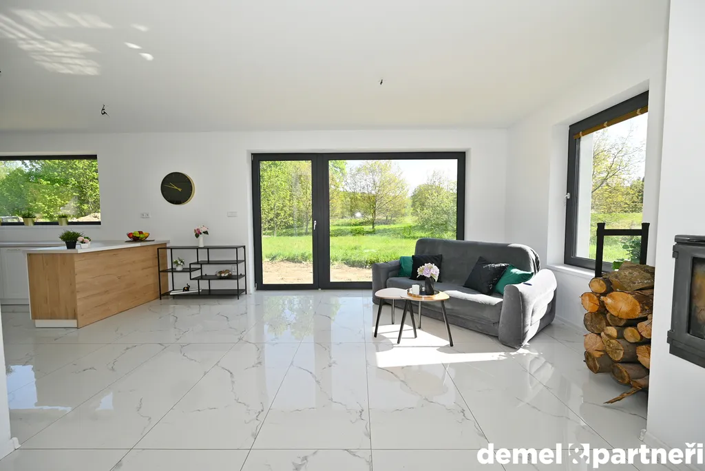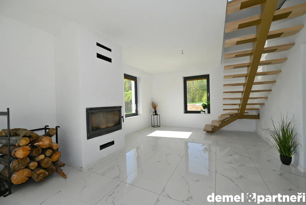Tenhle zděný rodinný dům s užitnou podlahovou plochou 124 m², je aktuálně před kolaudací a čeká na své první obyvatele, kteří z něj vytvoří domov, nebo dokonalé místo k relaxaci. Po otevření vstupních dveří na tebe čeká v přízemí luxusní koupelna s vanou a záchodem, technická místnost, útulný obývací pokoj s krbovými kamny a prostorná kuchyně vybavená všemi spotřebiči. Otevřeným schodištěm se pak dostaneš do podkroví, kde na tebe čekají tři neprůchozí ložnice a dvě šatny. Starosti se záchodem řešit nemusíš, protože ho tu najdeš taky.