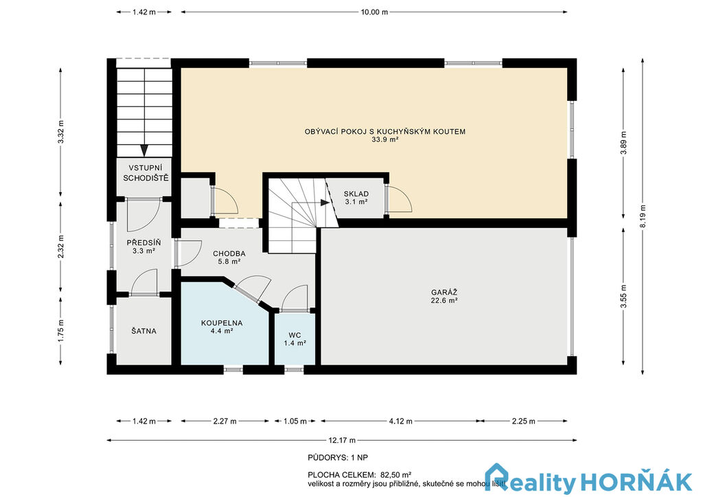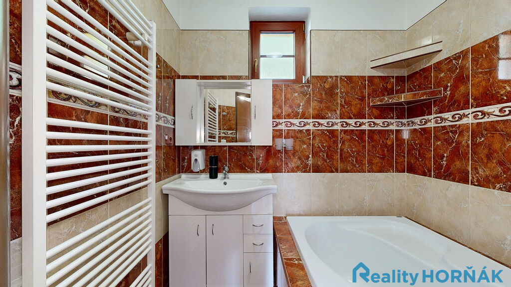 Skutečný stav nemovitosti si nejlépe prohlédnete ve virtuální prohlídce (3D sken nemovitosti – Matterport), která je součástí inzerce. Po zaškrtnutí ikony červeného křesílka ve spodním menu virtuální prohlídky se Vám nemovitost zobrazí bez vybavení a zařízení, po zaškrtnutí ikony měřítka se Vám zobrazí rozměry místností.