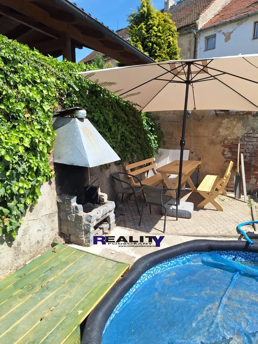 Dům je napojený na veřejný vodovod a veřejnou kanalizaci, nové rozvody vody v plastu, elektřina v mědi, eurookna ( v přední části ), sedlová střecha, podsklepeno. Zastavěná plocha a nádvoří 170 m2, užitná plocha 152 m2. K domu náleží dvůr v zadní části budovy a zahrada o výměře 123 m2 orientovaná do vnitrobloku, na kterém se nachází kopaná studna ( hloubka 21 m ), solární sprcha, bazén a pergola k posezení. Plocha pozemku 293 m2.