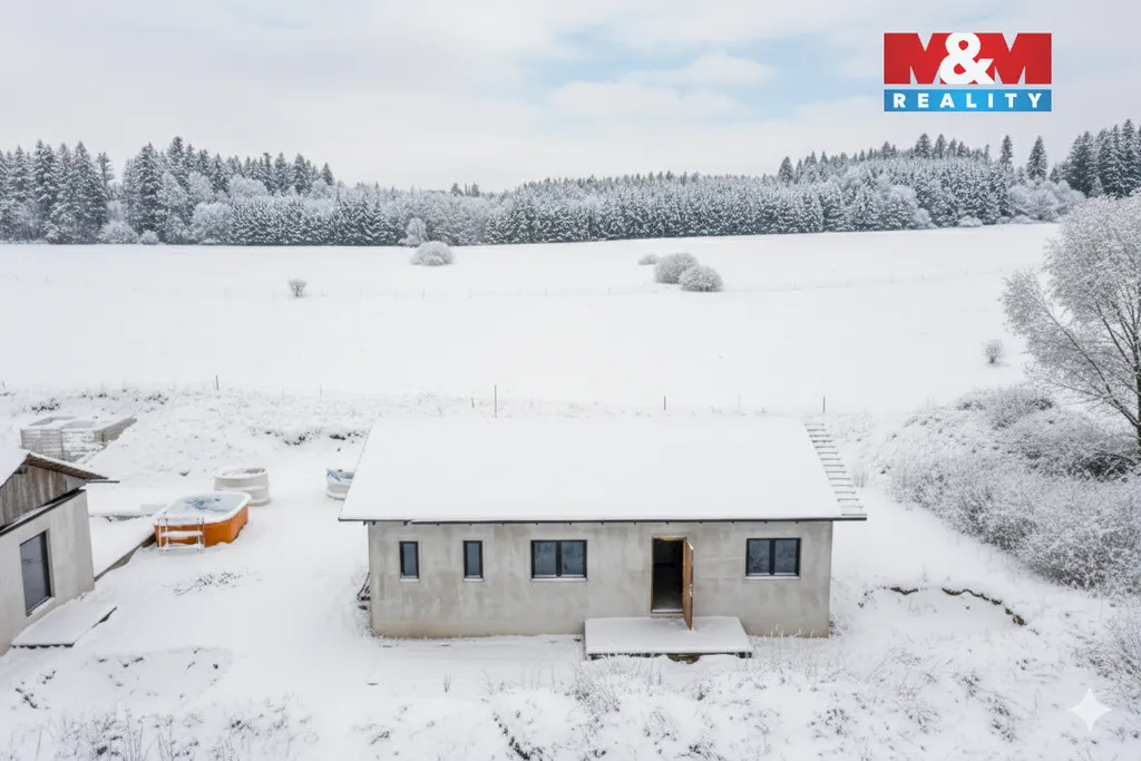 Nabízíme k prodeji moderní a energeticky úsporný rodinný dům v nádherném prostředí Hořic na Šumavě, ideální pro ty, kteří hledají klid v přírodě. Jedná se o dřevostavbu před dokončením na pozemku o rozloze 1417 m². Dům s dispozicí 5+KK nabízí 3 ložnice, pracovnu a prostorný obývací pokoj s kuchyní. K dispozici je balkón, terasa o ploše 50 m² . Vytápění a ohřev vody bude zajištěno tepelným čerpadlem IVT-50 (které již bylo zakoupeno) a krbová kamna na pelety. Příprava pro rekuperaci Meltem je hotová. Poloha 5 km od Lipenské přehrady a 15 km od Českého Krumlova je ideální i pro krátkodobé pronájmy s vysokým výnosem. Zajištěné dokončovací práce na domě: podlaha, podlahové topení, instalace tepelného čerpadla Eurosystem, rekuperace Meltem, jsou hotové rozvody po celém domě, zbývá osadit jednotky.