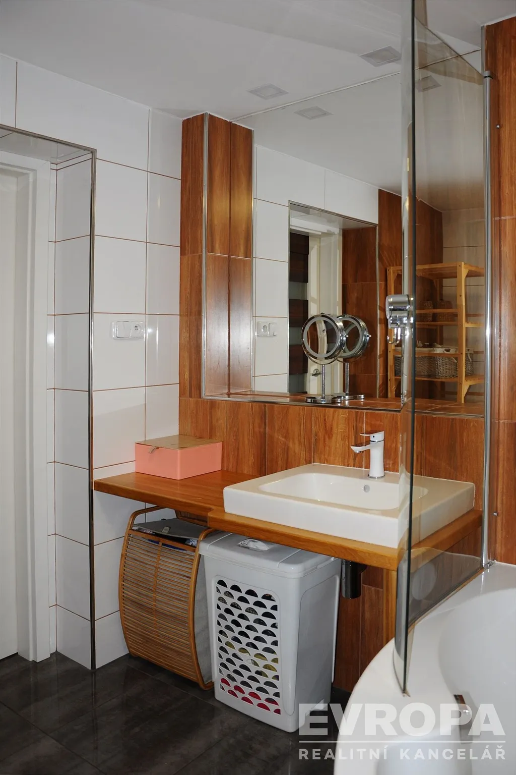 Interiér bytu je částečně zařízen a udržován ve velmi pěkném stavu. Bytová jednotka je přizpůsobena modernímu životnímu stylu a vybavena kabelovou televizí, telefonním připojením a kabelovým internetem, což z něj činí ideální prostor pro život rodiny či práci z domova.