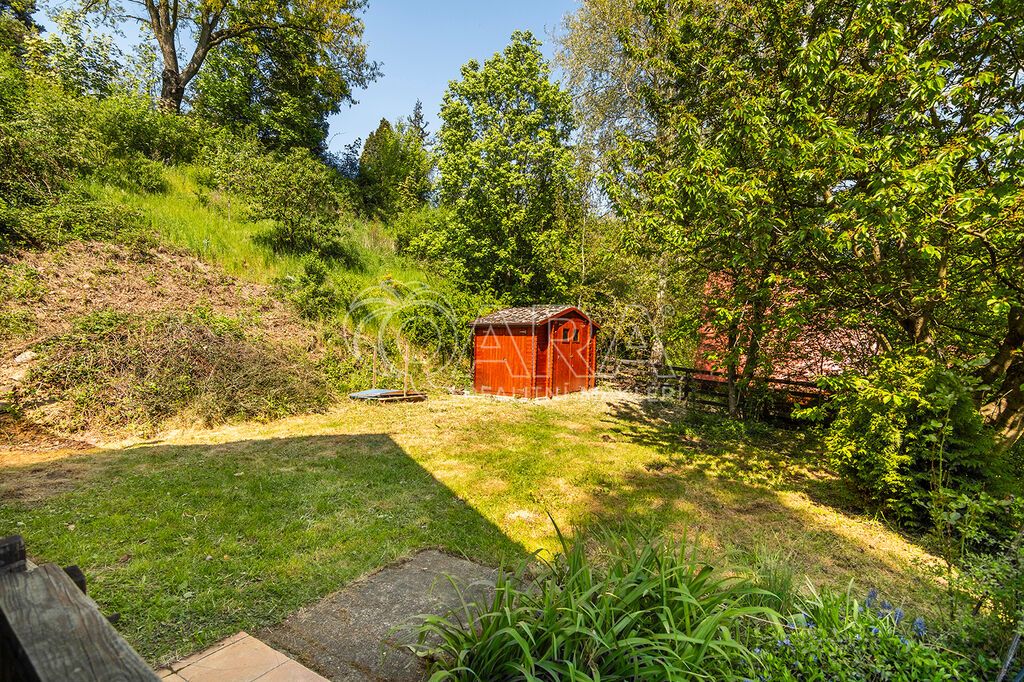 Částečně svažitý pozemek má výměru 1.078 m2 (vč. zastavěné plochy a nádvoří) a nachází se na něm vzrostlé keře a stromy. Nemovitost poskytuje dostatek soukromí i zeleně.
