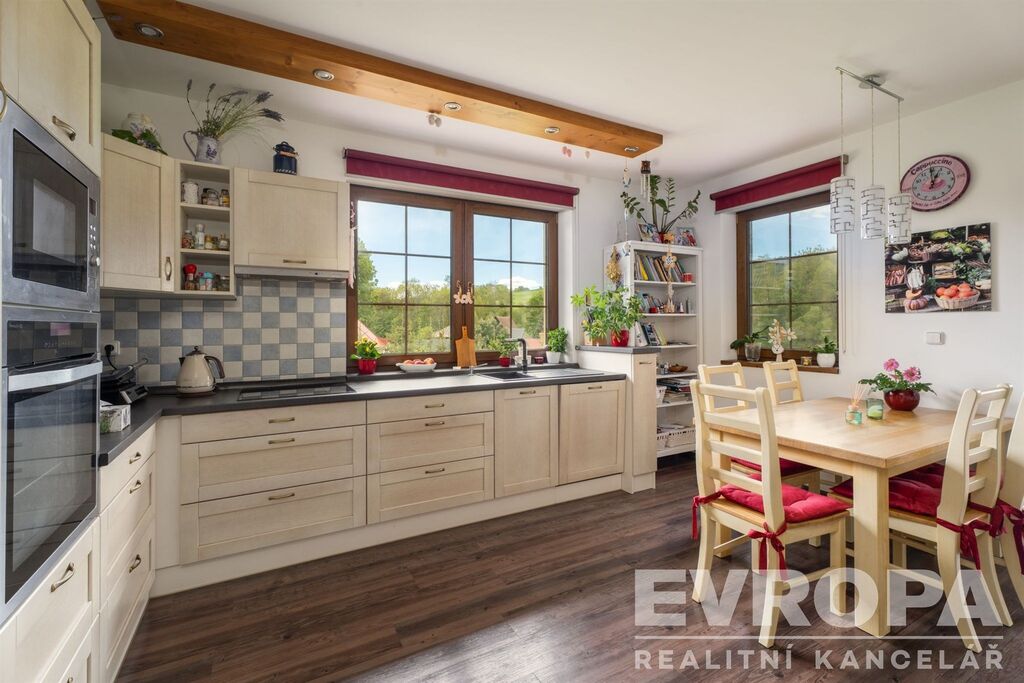 Vytápění a ohřev teplé vody zajišťuje tepelné čerpadlo, v obývacím pokoji je možné topit krbovými kamny. Objekt je napojen na vlastní studnu, odpad je sveden do tříkomorového septiku. Podlahy jsou řešeny kombinací kvalitní dlažby a vinylu (v přízemí domu podlahové vytápění). Kuchyňská linka i další dřevěné vybavení domu byly zhotoveny na míru z kvalitního masivu.