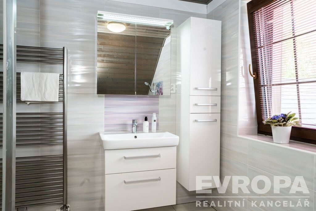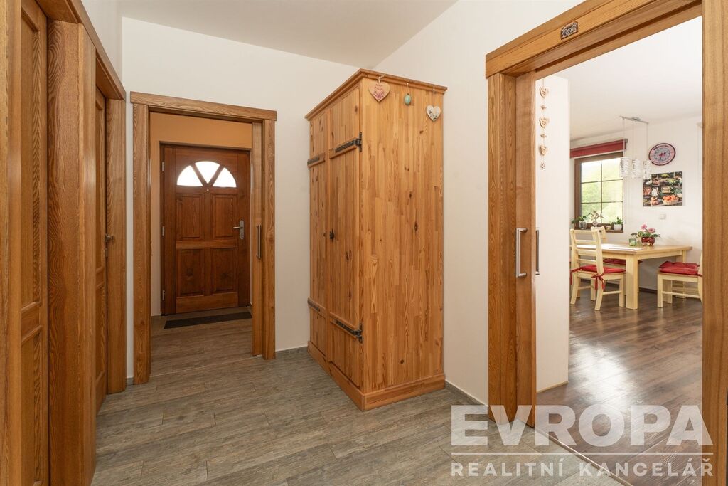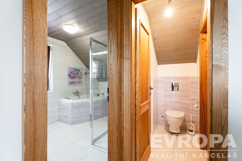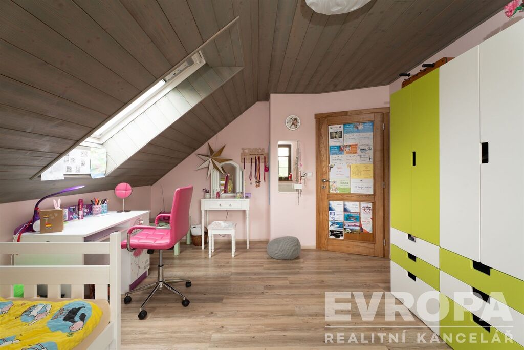 Dům byl zkolaudován v roce 2014 a je ve výborném stavu, připravený k okamžitému nastěhování. V přízemí se nachází zádveří s návazností na chodbu se schodištěm, ze které je přístup do technické místnosti, koupelny se sprchovým koutem a WC, pracovny a prostorného obývacího pokoje s kuchyňským koutem o výměře 33,5 m². Z obývací části je výstup na zpevněnou terasu s krytým posezením, která navazuje na pečlivě udržovanou zahradu. V podkroví domu jsou dva dětské pokoje, hlavní ložnice se samostatnou šatnou a prostorná koupelna s vanou i sprchovým koutem a samostatné WC. Vstup z podkroví vede i do půdního prostoru, který slouží jako praktický úložný prostor.