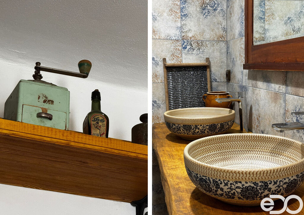Hlavní budova (č. 1) nabízí ve sníženém podlaží stylovou vinárnu, v přízemí jídelnu s kuchyňským koutem, ložnici, koupelnu, dvě toalety a samostatný byt 2+kk s vlastní koupelnou. V patře jsou tři velké ložnice, dva menší pokoje, koupelna a komora. Celý interiér je zařízen hodnotným masivním nábytkem, historickými a dobovými prvky – nechybí dekorace jako dřevěná kola, staré šicí stroje či dobové obrázky.