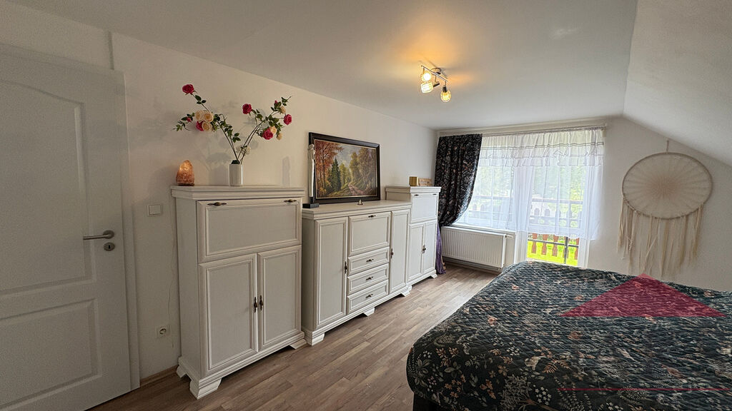 Ojedinělá příležitost koupě moderního vybaveného domu v turisticky zajímavé a žádané lokalitě na hranici NP Šumava v městečku Rejštejn (MÚ, SDH, restaurace, kostel, dětské hřiště, minigolf, možnost koupání a rybolovu v řece Otavě...), splňující kritéria na ideální celoroční rekreaci (výborný stav domu i vybavení; klidná lokace a umístění domu s orientací na jiho-západ; 2 koupelny, garáž) a hlavně krásná divoká Šumavská příroda všude kolem vás. Kašperské Hory 3,5 km. Srní 9 km. Sušice 13 km. Praha 150 km. Nyní dům užívají nájemníci s podanou výpovědí.