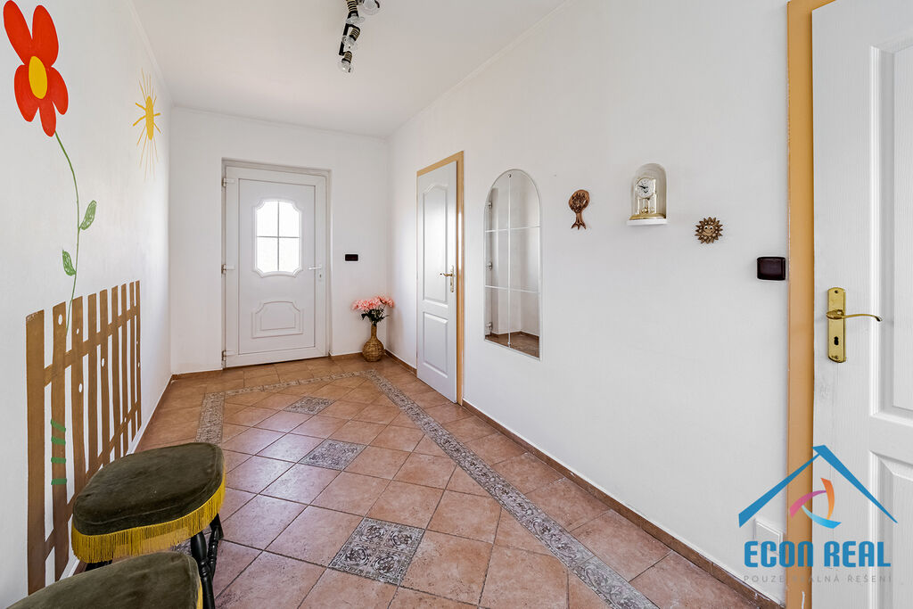Dům o stávající dispozici 3+1 s možností rozšíření do půdní vestavby – dnes útulný dům s plně vybavenou kuchyní, jídelnou, ložnicí, dvěma koupelnami, společenskou místností se saunou, obývacím pokojem s krbem, který navozuje atmosféru horské chaty. Zítra? Dům lze rozšířit o další min. 3 pokoje v podkroví – příprava je hotová!