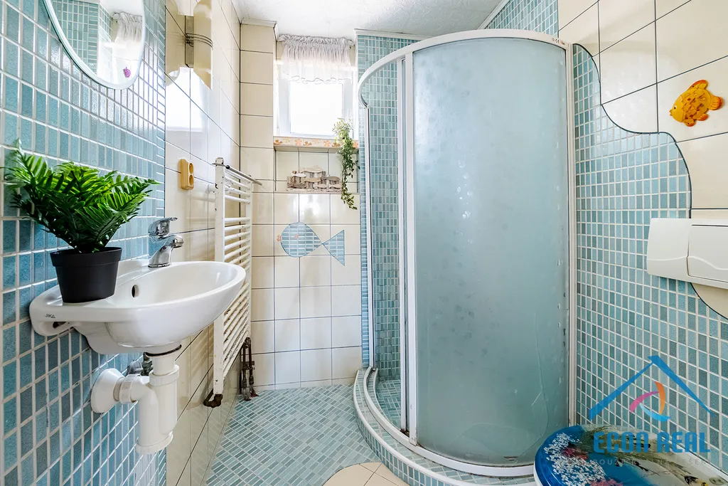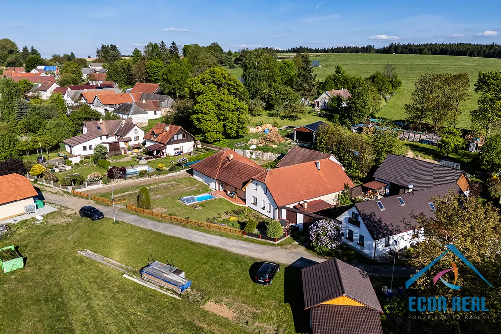 Tepelné čerpadlo Mitsubishi s napojením na topný systém (radiátory, rošty a podlahové topení), solární panely, retenční nádrž, vlastní vrtaná studna 25 m s novým motorem a hladinovým čidlem, ovládání vytápění a vířivky na dálku v mobilu, záložní kotel na tuhá paliva (aktuálně odpojen) a septik s minimálními náklady.