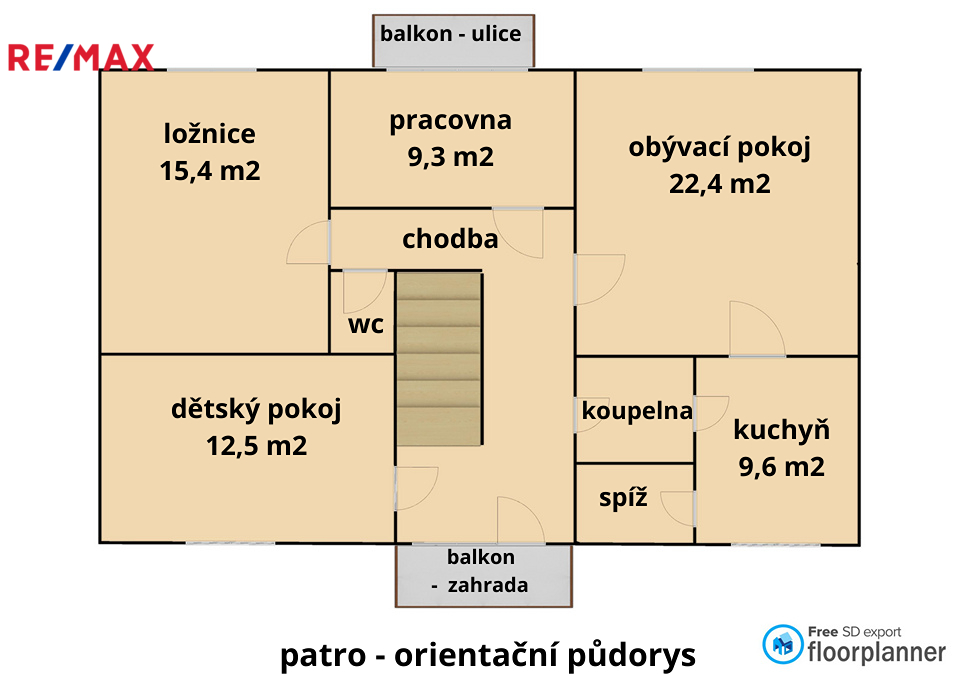 • 1. patro: 4 obytné místnosti + kuchyně