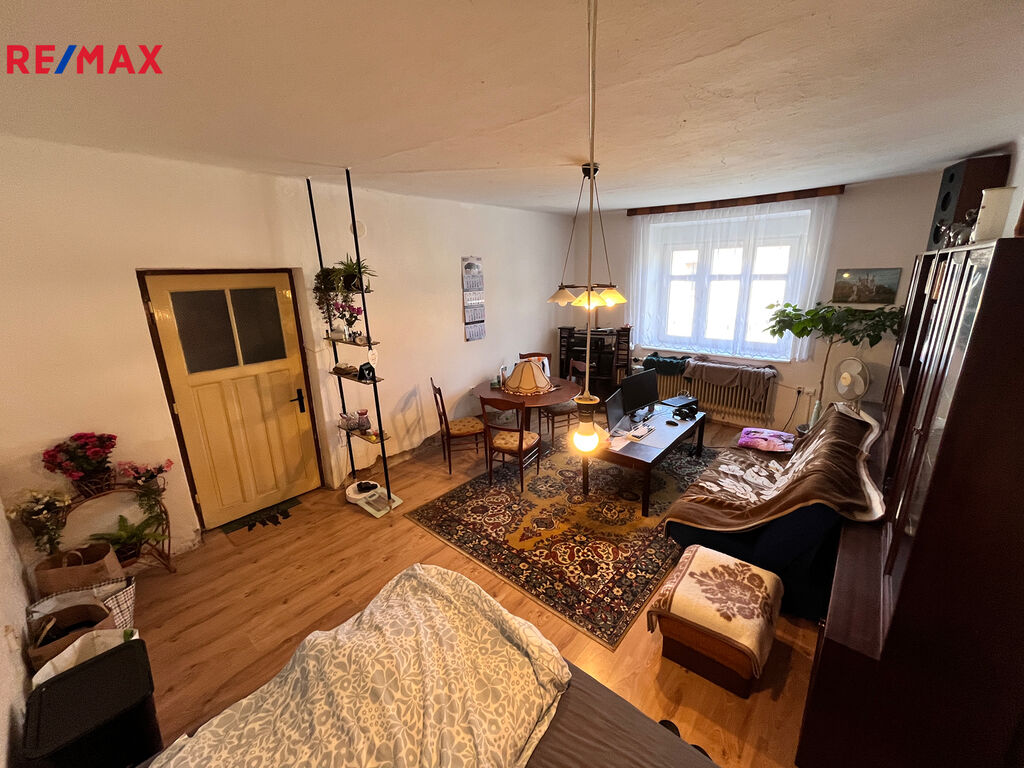 Jedná se o prodej samostatně stojícího rodinného domu 5+1 s garáží umístěného v okrajové části Nové Cerekve na pozemku o celkové výměře 527m2. Dům je dispozičně tvořen v přízemí předsíní 14,14m2, WC 1,21m2, kuchyní 9.74m2, ob. pokojem 27,55m2, ložnicí 14,80m2, a spíží 1,17m2, v podkrovní části se nachází 3 pokoje 20,97m2, 13m2, a 16,08m2, dále je v horní schodištové části umístěna kuchyň a v mezipatře spíž 2,26m2. Dům je napojen na obecní kanalizaci, zdroj vody je z vlastní studny, na hranici pozemku je obecní vodovod, vytápění ústřední dálkové z místní obecní štěpkovny, dále kotel na tuhá paliva. Okna domu jsou plastová, střešní krytinu tvoří taška pálená. U domu je garáž s el. vraty, dvůr je před položením dlažby a opravy venkovní pergoly. Podsklepení domu není. Městys Nová Cerekev disponuje veškerou vybaveností, od Pelhřimova vzdáleno 12km. Pro více informací volejte makléře nabídky.