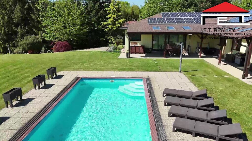 Dovolujeme si Vám nabídnout tuto výhradní nabídku. Prostorný bungalov s užitnou plochou 275 m² a terasou o velikosti 54 m² se nachází na klidném místě ve Slezké Ostravě, které je z jedné strany lemováno biokoridorem. Rodinný dům o dispozici 6+kk s obývacím pokojem propojeným s kuchyní o rozloze 70 m², 4 samostatné pokoje, 2 koupelny, jedna menší se sprchovým koutem + toaletou a druhá větší s vanou, sprchovým koutem a toaletou. Dále se v domě nachází dvě šatny, technická místnost a dílna o velikosti 17 m2 se samostatným vstupem. V kuchyni je prostorná kuchyňská linka se středovým ostrůvkem s dostatkem úložných prostor, k uchování potravin slouží špíz, která je v rohu kuchyně. K parkování je dvojgaráž a další tři stání na příjezdové cestě. Relaxovat můžete u 8x4 metrů velkého zastřešeného bazénu se slanou vodou. Dům je napojen na vlastní studnu s pitnou vodou. V domě je instalována fotovoltaická elektrárna o výkonu 10 kWp s bateriovým úložištěm, která stačí pokrýt celkovou spotřebu domu v rozmezí šesti měsíců v roce. V domě se nachází 700 litrové mořské akvárium, které dělí jídelní/kuchyňskou část od obývací části. V obývacím pokoji je dostatek svěltla a přítup na terasu je přes velkoformátové posuvné dveře. Tři dětské pokoje mají samotatný přístup na terasu. Tento bungalov je ideální domov pro velkou rodinu, která si cení klidného místa, kousek od centra města, na zastávku MHD je to pouhých 6 min chůze a MHD 10 min do cetra. Doporučujeme prohlídku, abyste mohli ocenit vše, co tato nemovitost nabízí.