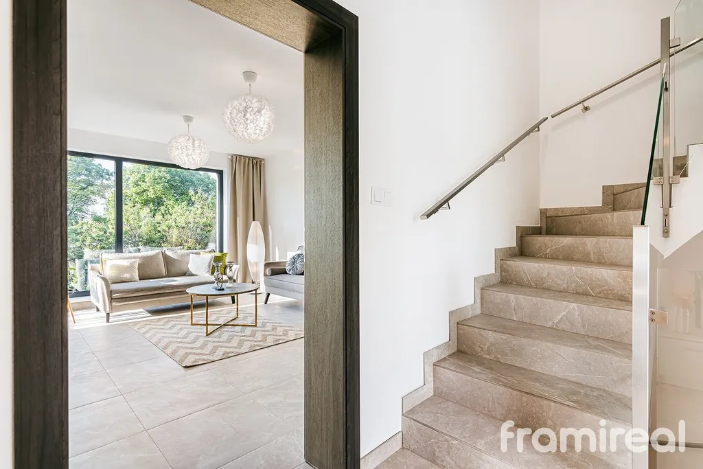 Dům je rozdělen do tří logicky uspořádaných podlaží. V přízemí se nachází prostorné zádveří s dostatkem místa pro odložení věcí, dále následuje velkorysý obývací pokoj s přípravou pro kuchyň a jídelnu. Díky velkoformátovým oknům je interiér prosvětlený a lodžie nabízí ideální prostor pro ranní kávu nebo večerní relaxaci. Přízemí dále doplňuje samostatná toaleta a příprava na předokenní žaluzie, které oceníte zejména v letních měsících.