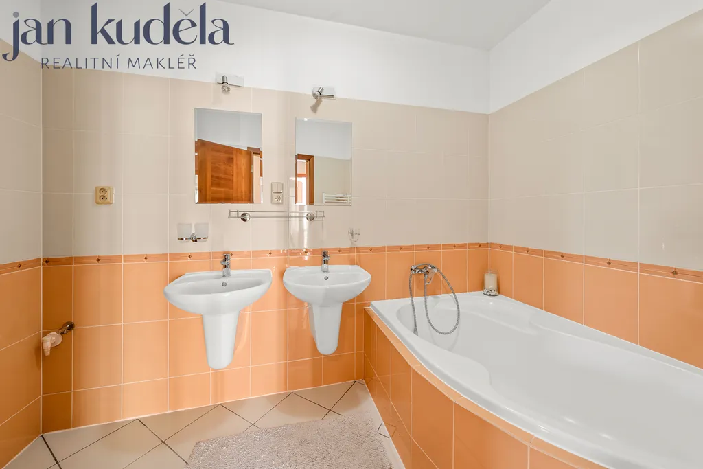 Horní patro nabízí čtyři samostatné ložnice, koupelnu s vanou a oddělenou toaletu. Tato část bytu zůstala v původním stavu a skýtá možnost případné budoucí modernizace dle vlastních představ.
