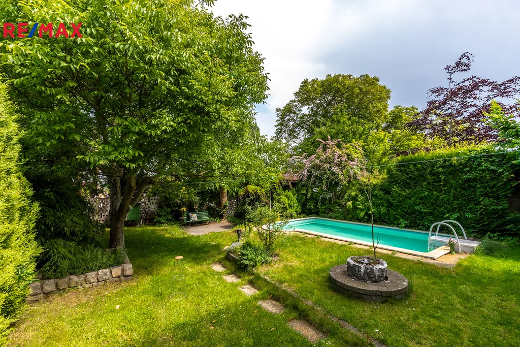 ✓ Příjemná zahrada s bazénem a krytou pergolou.