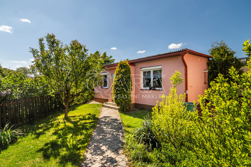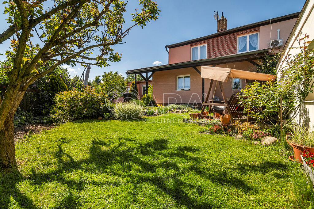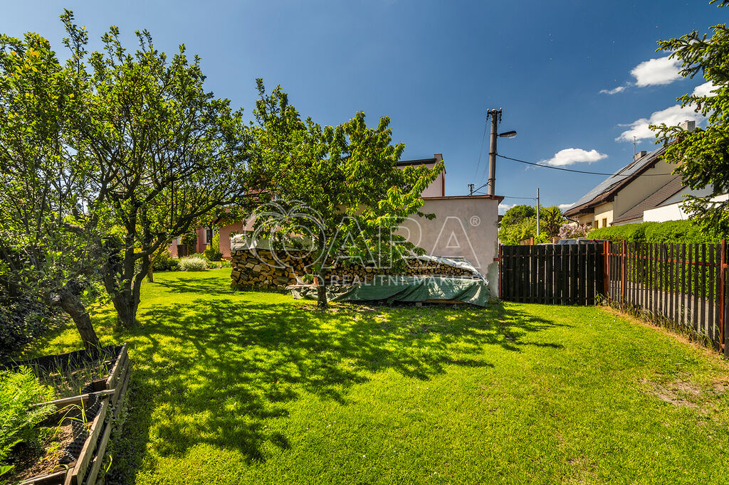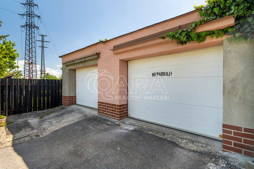 Součástí pozemku je prostorná dvougaráž (cca 40 m²), která je částečně podsklepená a tedy ideální např. k celoročnímu uskladnění potravin. Zahrada je zatravněná a osazená rostlinami a ovocnými stromy. Jsou zde umístěny kolny k uskladnění dřeva i zahradních a kutilských potřeb.