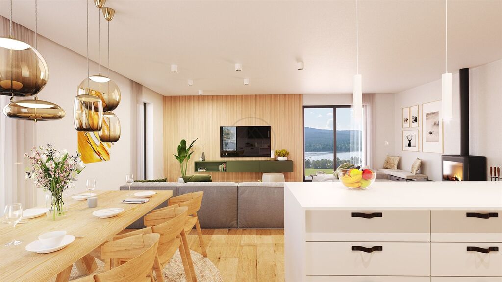 Objekt domu je navržen v souladu se šumavskou architekturou a důrazem na kvalitu stavebních materiálů. Přízemí disponuje prostorným zádveřím, ze kterého je přístupná koupelna s WC, technická místnost a pokoj pro hosty. Za schodištěm se nachází velká kuchyně s jídelnou, obývací částí, a vstupem na krásnou terasu s unikátním výhledem na vodní hladinu Lipna. V podkroví jsou dva pokoje, další koupelna s přípravou na saunu a hlavní ložnice se šatnou.
