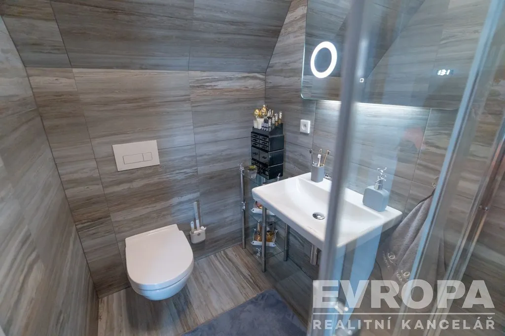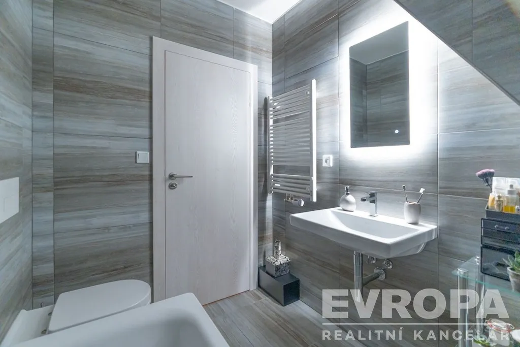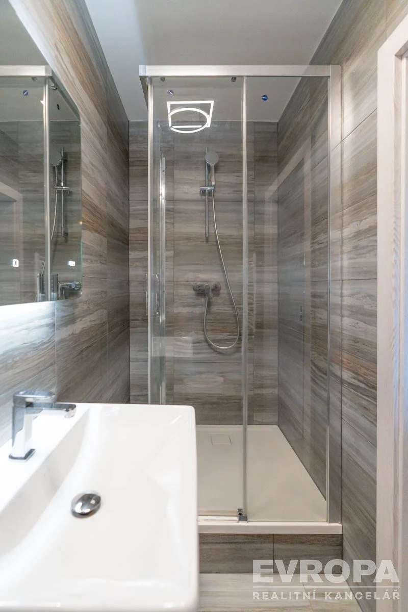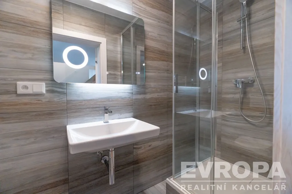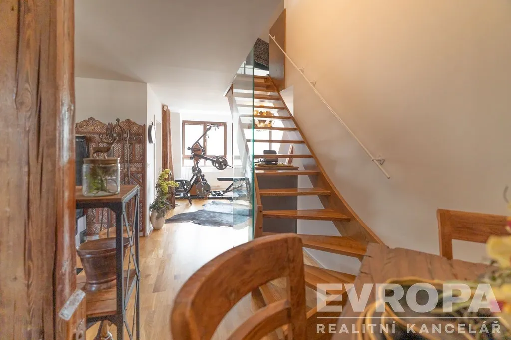 Exkluzivně Vám nabízíme k prodeji unikátní byt 4+kk o celkové podlahové ploše 164 m2. Jedná se o mezonetové bydlení (nová vestavba), kdy dispozičně se v 1. patře nachází vstupní hala, jedna ze tří koupelen s WC, dále pokoj pro hosty / ložnice, jídelní kout, nadstandardně velké zakázkové lůžko mezi trámy a velmi prostorný atypický obývací pokoj propojený s kuchyní, z něhož je přímý výhled na Ještěd. Ve 2. patře se nachází prostorná ložnice s vlastní koupelnou vč. WC a nadstandardně velkou šatnou, dále je zde druhá samostatná ložnice s koupelnou a WC, prací a úklidová komora. Byt se nachází v jedinečné lokalitě na Masarykově ulici ve 3. patře budovy bývalé Obchodní a živnostenské komory (poliklinika) naproti muzeu a lázním, na tzv. Zlatém kříži. Je zde zcela nový výtah s přednostní jízdou na čip do patra, kde se mezonet nachází. Přímo ve dvoře této historické budovy je vlastní nadstandardně široké parkovací stání, které je zabezpečeno proti zaparkování cizího vozidla elektronickým sloupkem na dálkové ovládání. Na patře je též samostatná komora s regály. Byt, který Vám nabízíme, se nachází za rohem na konci chodby bez jakýchkoli sousedů a není tak nikým rušen. Je vybaven exkluzivní kuchyňskou linkou z teakového dřeva se spotřebiči a po dohodě může zůstat kompletně zařízen. Byt je vybaven kamerovým a bezpečnostním systémem. Nízké provozní náklady jsou zde velkou výhodou a umožní tak příjemné okamžiky při užívání si vlastního prostoru a jedinečného místa na bydlení. Byt volný ihned.