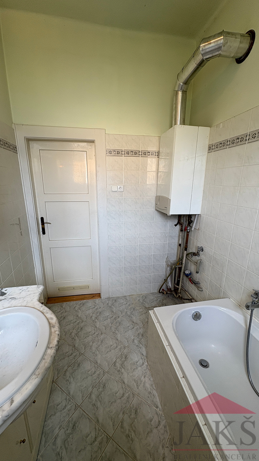 Popis: předsíň 17,55 m2, samostatné WC 2,31 m2, koupelna 5,13 m2 (vana, umyv. se zrcadlem, vývody na pračku, plynový kotel), bývalý balkon, nyní pracovna 5,33 m2 (šlo by obnovit po vybourání zdi anebo rozšířit do velké předsíně a přestavět na pokoj), kuchyň 17,58 m2 (kuch. linka s plynovým sporákem s el. troubou) s jídelnou, spíž 2,54 m2, komora 4,67 m2, prostorný obývací pokoj 29,97 m2 a 2x ložnice 23,31 m2 a 20,14 m2.