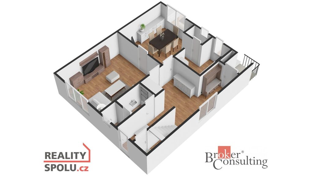 Dům s dispozicí 5+2kk má 3 podlaží, na pozemku o výměře 695m2.