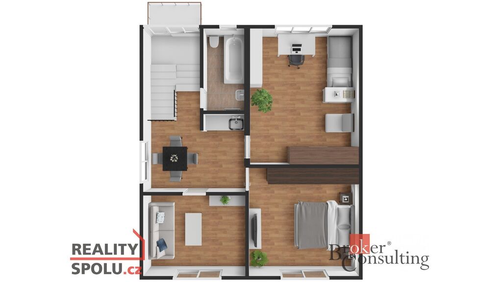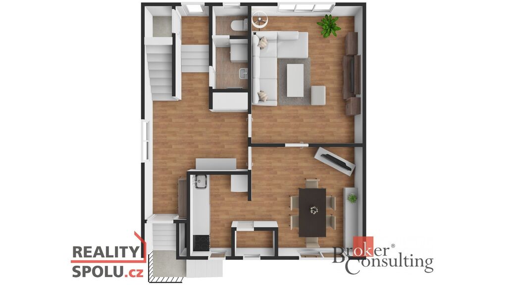 Velkou výhodou domu je velmi dobrý potenciál a možnost jej poměrně jednoduše upravit, například na dvě samostatné bytové jednotky.