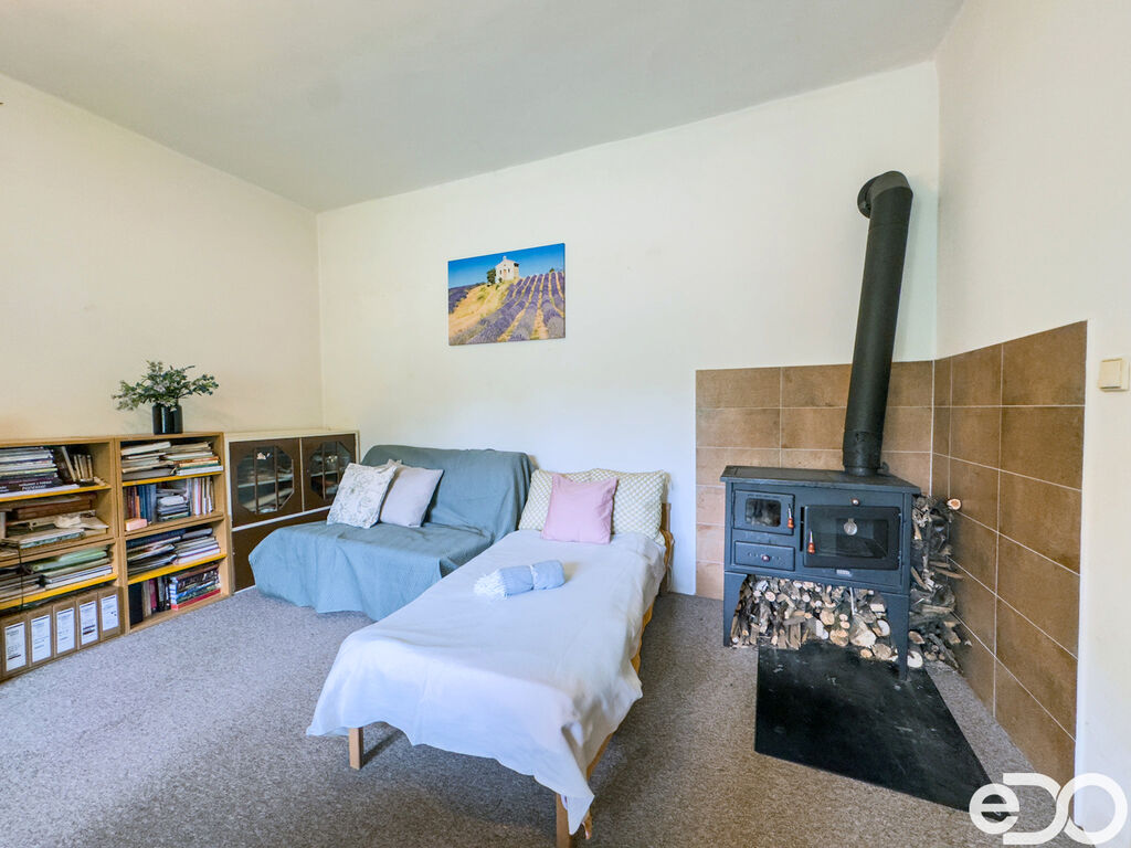 Dům má zahradu o výměře 510m2, vlastní vchod, je podsklepen, parkuje se podélně před domem. Též je v nabídce na prodej rekonstruovaná dvougaráž za 500tis.