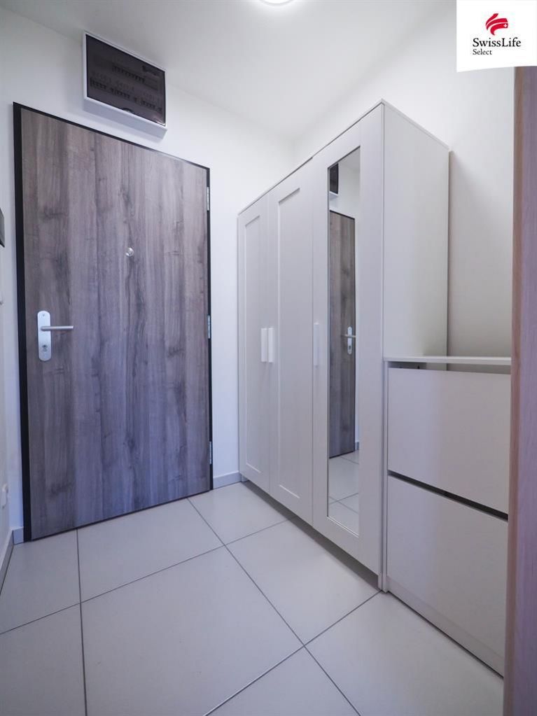 Nabízíme k dlouhodobému pronájmu nadstandardně řešený byt o dispozici 1+KK se sklepní kójí a možností podzemního parkovacího stání. Bytový dům je součástí nově vybudovaného komplexu moderních bytových domů v rezidenční lokalitě Havlíčkův Brod - Čechovka. Budovy jsou realizovány v nadstandardním provedení (kvalitní cihlová obálka opatřená kontaktním zateplovacím systémem, PVC okna s izolačním trojsklem, předokenní žaluzie, moderní protipožární a zabezpečovací systém, na střeše instalovaná fotovoltaická elektrárna snižující náklady na provoz bytu a celého domu). Bytová jednotka je situována ve 4. nadzemním podlaží (s eurovýtahem). Podlahová plocha jednotky včetně příslušenství je 26,2 m2. V této výměře není zahrnuta plocha sklepní kóje (1,8 m2) umístěné v 1. podzemním podlaží. Dispoziční řešení bytu: chodba (3 m2), obývací pokoj s kuchyňským koutem (19,3 m2), koupelna + WC (3,9 m2). Interiér je z části vybaven (kuchyňská linka s integrovanými elektrospotřebiči, chladnička s mrazákem, jídelní stůl + židle, 2 komody, šatní skříň, botník, sanitární vybavení, osvětlení, předokenní žaluzie). V bytě je instalováno komfortní a energeticky úsporné teplovodní podlahové vytápění a optické internetové připojení. Za příplatek možnost parkovacího stání (13,8 m2) umístěného v suterénu domu. Výhodná poloha domu v klidné části města, v zástavbě rodinných domů a viladomů, s dostatkem zeleně a dobrou dostupností služeb.