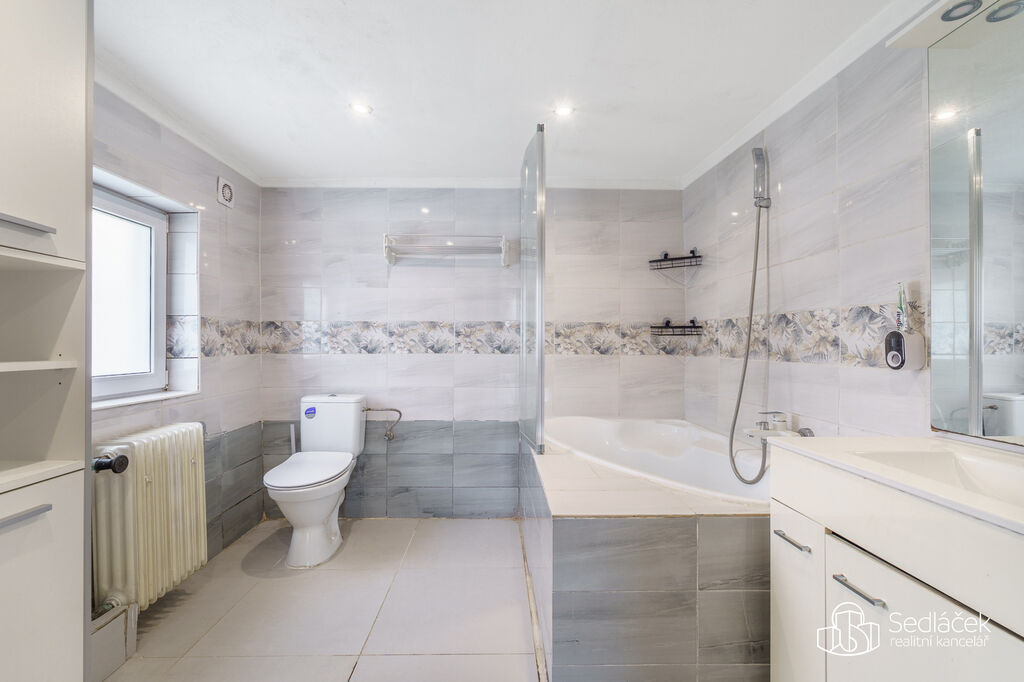 - V patře jsou dvě ložnice a vstup na půdu, kterou lze přestavět na další obytný prostor.