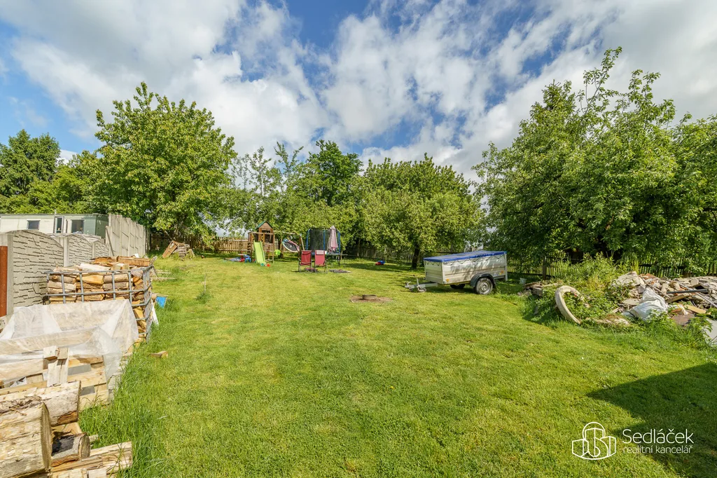 Na oploceném pozemku stojí samostatná garáž, dílna a sklad, takže o úložný prostor nebude nouze.