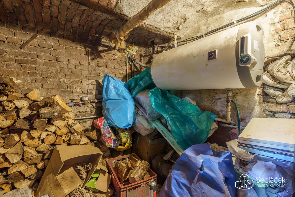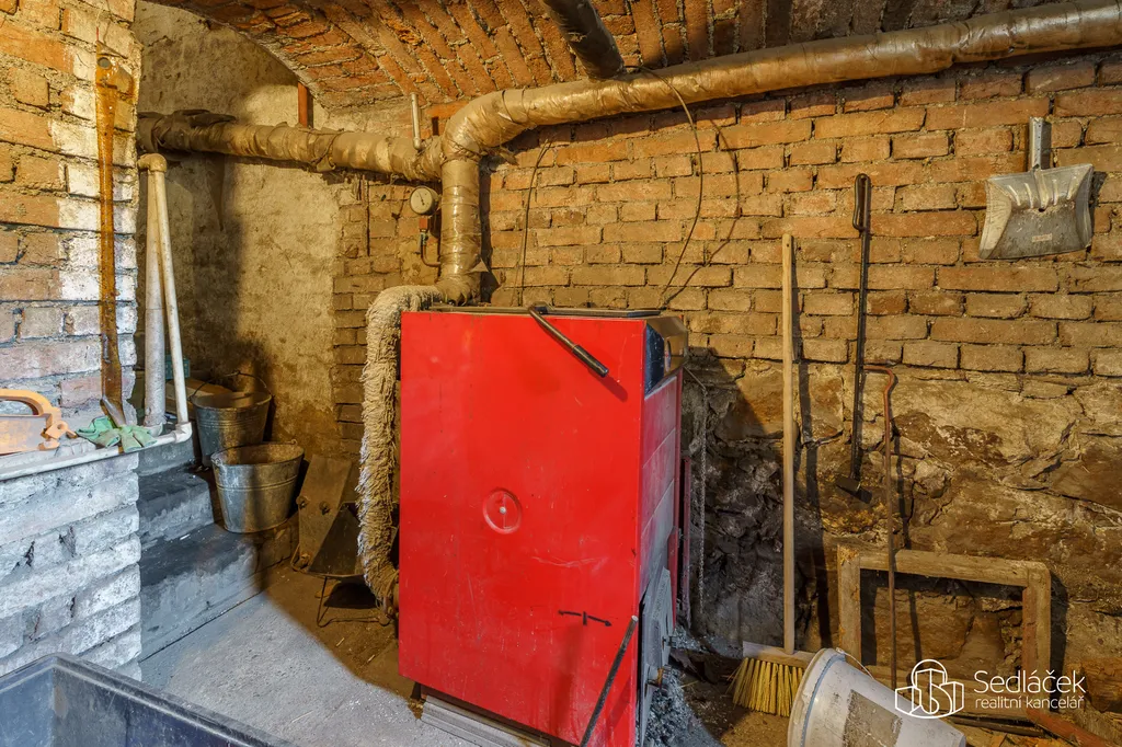 - Ve sklepě je technické zázemí s kotlem na tuhá paliva a bojlerem.