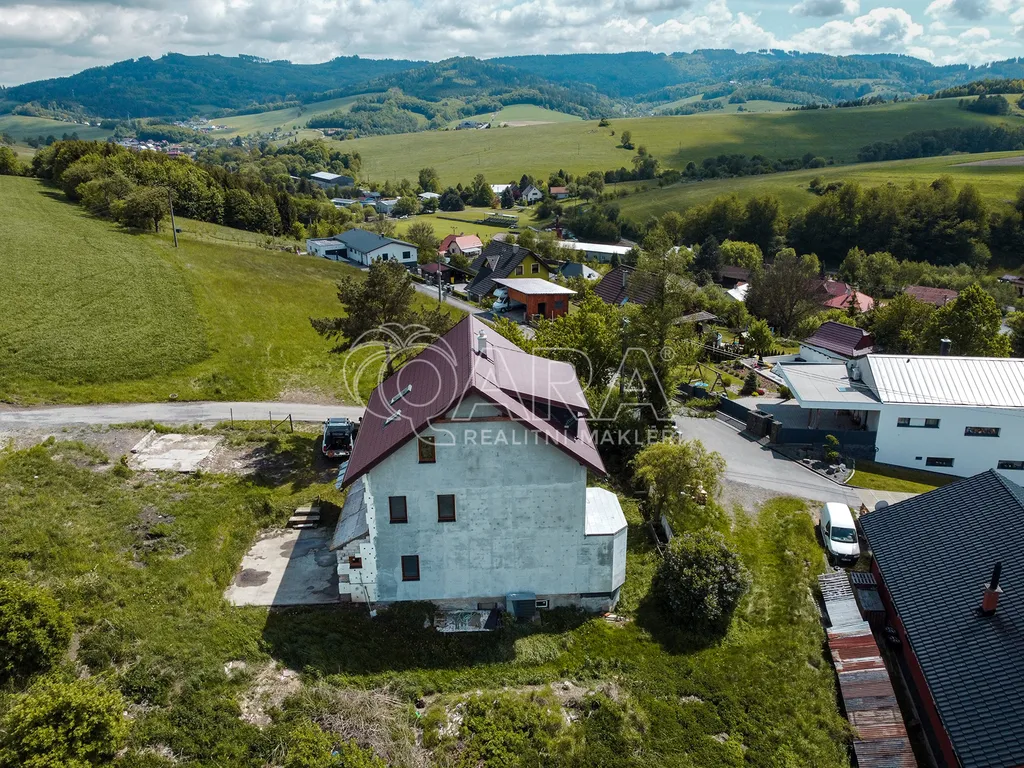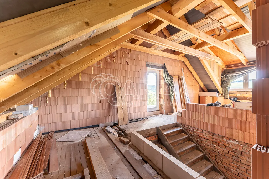 Podkroví (50m²) je připraveno včetně rozvodů a odpadů pro výstavbu dalších dvou pokojů s velkým střešním balkonem a nádherným výhledem na pravou Beskydskou krajinu. Díky tepelnému čerpadlu se nemusíte bát vysokých nákladů. Dům je napojený na veřejný vodovod a eletkřinu.