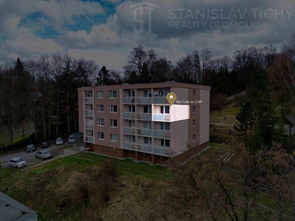 Světlý a útulný byt s dispozicí 1+kk a výměrou 22 m2 je situovaný ve 3.NP panelového domu, stojícího na travnatém kopci na úplném okraji města a obklopeného vzrostlými stromy. Byt před několika lety prošel kompletní rekonstrukci a je kompletně zařízený včetně kuchyňské linky, sklokeramické varné desky, ledničky s mrazničkou, pračky a nábytku. Je připravený k okamžité nastěhování bez dalších investic. Výhodou je lodžie s panoramatickým výhledem na celé město, prostorný sklep pro úschovu věcí a parkování přímo před domem. Celý dům má nová plastová okna a zábradlí lodžií a nově je kompletně zateplen.