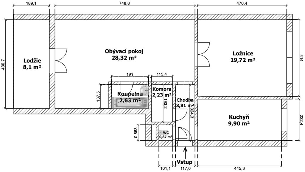 • Byt disponuje samostatnou kuchyní, prostorným obývacím pokojem a ložnicí.