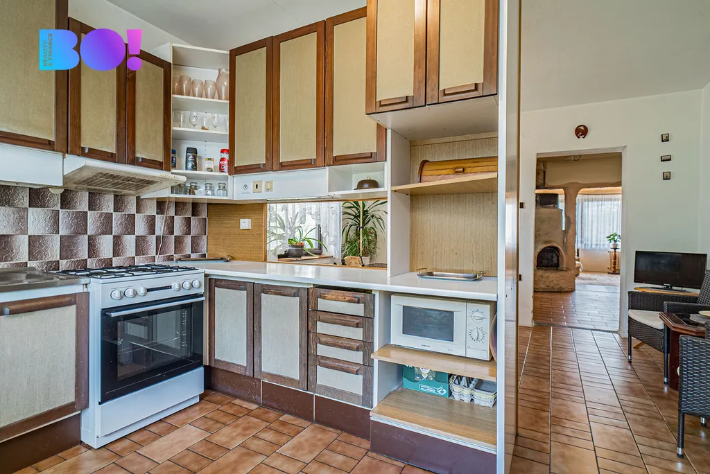 Dům byl postaven v roce 1990, rozvody elektřiny v mědi a původní kuchyň, koupelna i dřevěná okna.
