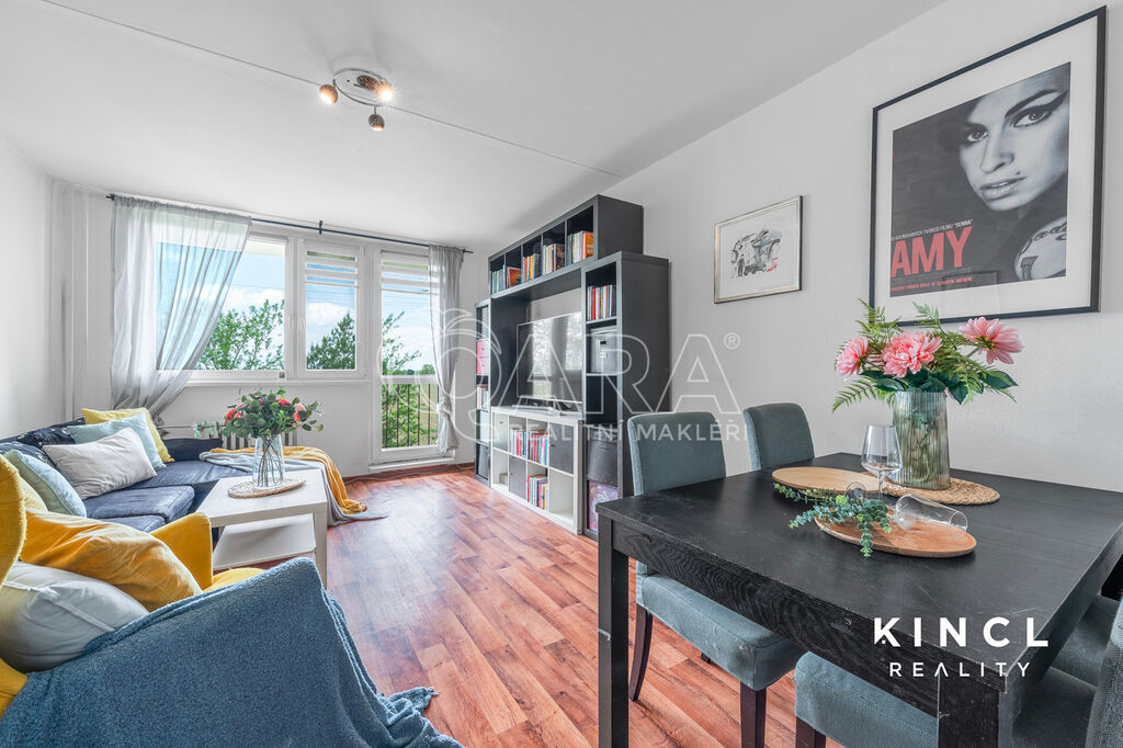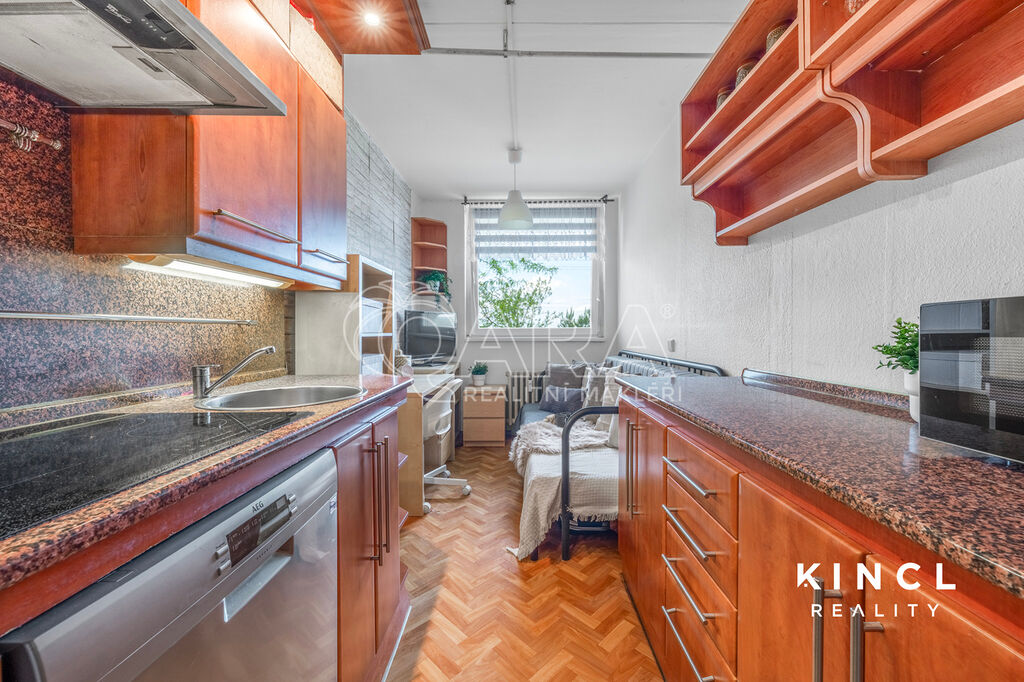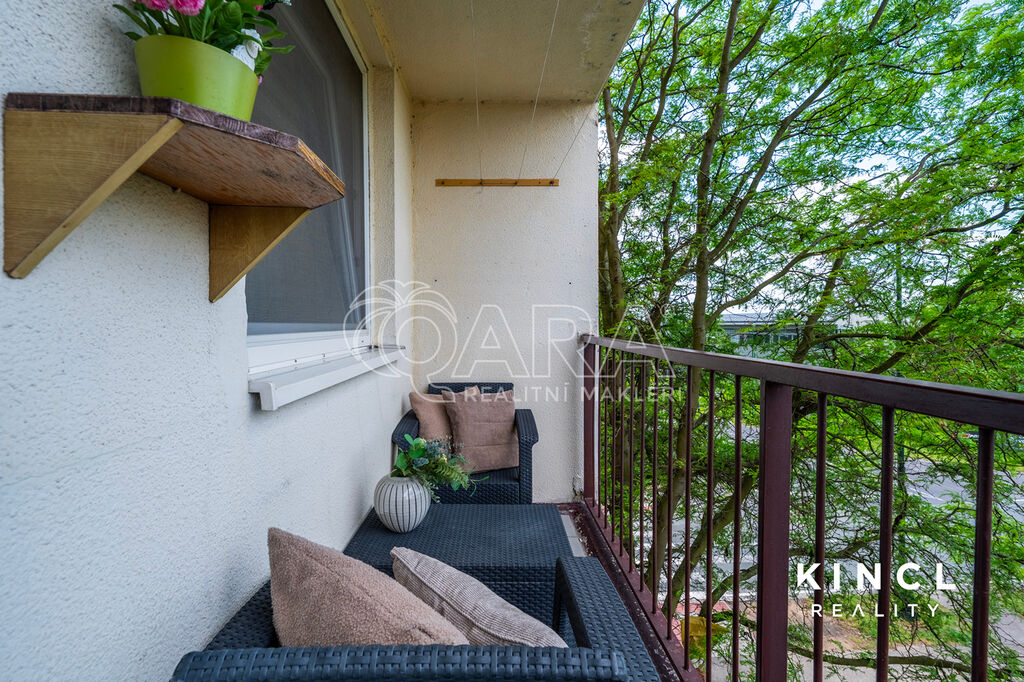 Byt má praktické uspořádání, které dává smysl jak pro jednotlivce, tak pro rodinu. Obývací pokoj je prostorný a díky přímému vstupu na lodžii s výhledem do zeleně působí ještě vzdušněji. Kuchyně je samostatná, takže vaření neruší zbytek domácnosti. Dvě ložnice nabízejí dostatek prostoru pro pohodlné bydlení a oceníte i solidní množství úložných míst. Jádro bytu prošlo rekonstrukcí v roce 2017 – vše je funkční a čisté. Dům je klidný, sousedé příjemní a výtah jezdí tiše, takže o něm ani nevíte.