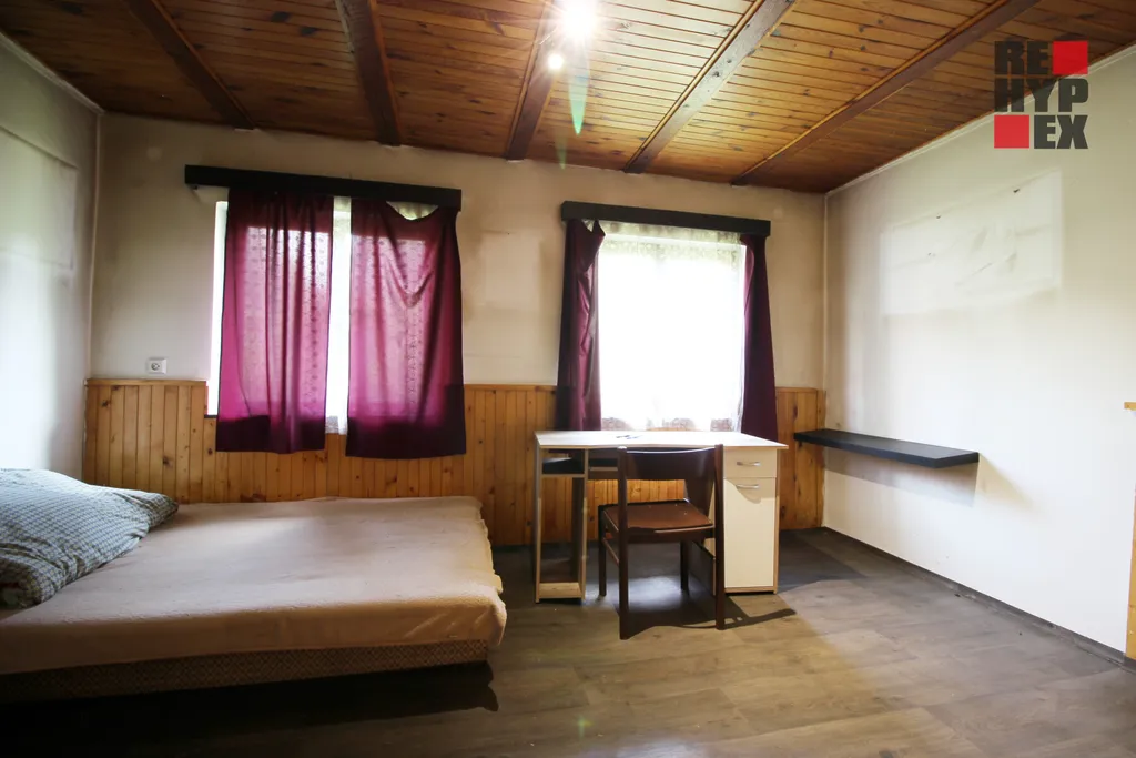 Jako bonus majitel ke stavební pozemků přidává i ideální polovinu rodinného domu, který se nachází hned přes cestu. Jedná se o starší dům v původním stavu. Majitelé jsou dohodnuti na společném využívání koupelny a WC (suché) a odděleném využívání přízemí (kuchyňský kout, pokoj a ložnice) a poloviny půdních prostor (prostor pro přespání). Je možná jej tedy například využít jako zázemí pro řemeslníky při výstavbě na vedlejším pozemku. Topení je zajištěno prosklenými krbovými kamny, takže je možné i celoroční obývání.