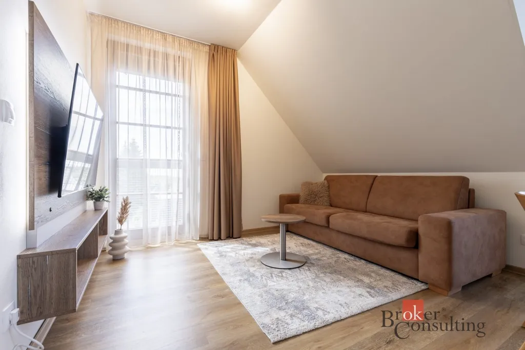 Dále je k dispozici 3D virtuální prohlídka, díky které si apartmán můžete projít online, měřit vzdálenosti a prozkoumat každý detail pohodlně z domova.