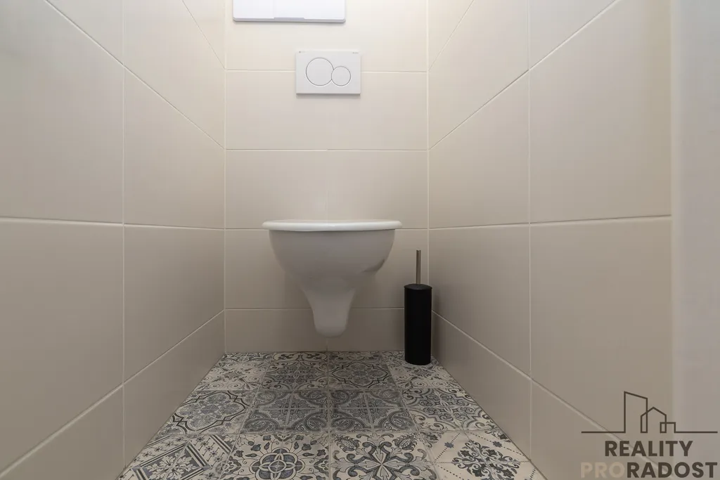 Interiér bytu nabízí komfortní bydlení. Na podlahách v pokojích jsou příjemné koberce, zatímco v kuchyni, na chodbě a v jednom z pokojů najdete praktické plovoucí podlahy. Koupelna a toaleta jsou oddělené, což přispívá k vyššímu komfortu užívání. Obě místnosti mají na podlaze dlažbu a v koupelně je připravena přípojka pro pračku. Srdcem bytu je nová kuchyňská linka, která je již vybavena vestavěnou myčkou a kombinovaným sporákem. Po dohodě s majitelem je možné byt částečně dovybavit dalšími spotřebiči, jako je lednice či mikrovlnná trouba.