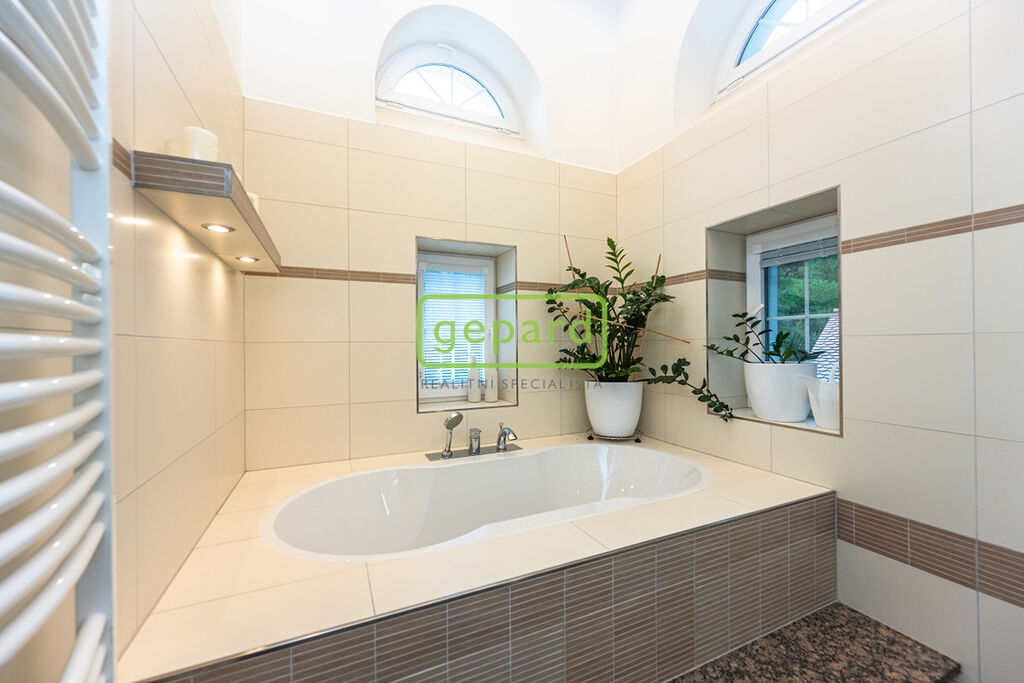 Zděný dům se zateplením, okny s trojskly, tři koupelny, tři WC, více v plánech domu. Vytápění a ohřev teplé vody s využitím tepelného čerpadla, solárních panelů a krbu s napojením na systém, podlahové topení. Sauna se sprchou a samostatným WC a výstupem na zahradu.