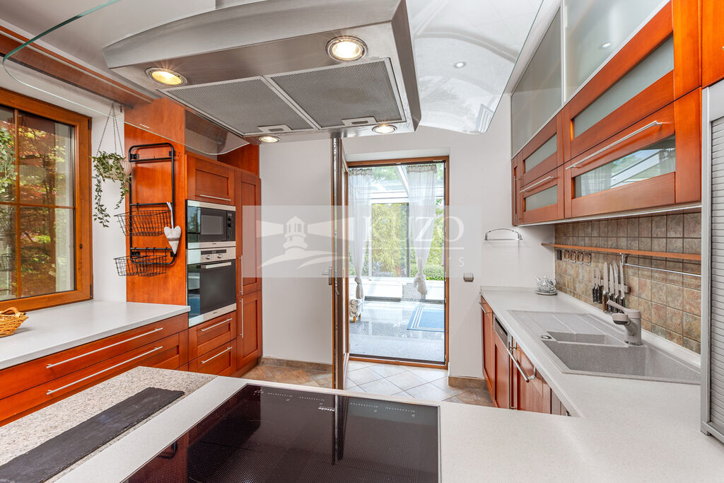 Interiér domu spojuje nadčasovou eleganci s maximální funkčností. Designová kuchyně osazená špičkovými spotřebiči Miele splní i ty nejnáročnější požadavky. Precizně zpracovaný nábytek na míru perfektně zapadá do konceptu prostoru a zajišťuje jeho praktické, a přitom estetické využití. Každý pokoj je navržen s ohledem na detail a poskytuje maximální pohodlí a eleganci.