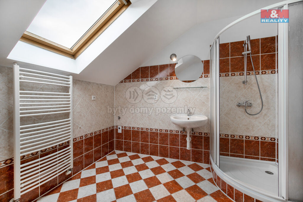 Nabízíme vám ke koupi prostorný rodinný dům v klidné části města Králíky. V přízemí domu se nachází obývací pokoj s kuchyňským koutem a vchodem na terasu. Dále pracovna se samostatnou koupelnou, ložnice, hlavní koupelna, technická místnost, komora a garáž pro dvě vozidla. V patře domu naleznete čtyři pokoje, koupelnu a půdní prostor. Vytápění celého objektu zajišťuje tepelné čerpadlo, přitopit si ovšem lze také v krbu. Voda je zde z veřejného řádu a odpady jsou svedeny do kanalizace. Nemovitost je energeticky úsporná. Dům byl postaven v roce 2005, poslední rekonstrukce zde proběhla před pěti lety. Po celou dobu je pečlivě udržován, a to včetně okrasné zahrady o rozloze 575 m². Králíky disponují výbornou občanskou vybaveností, bohatým kulturním vyžitím, a také blízkostí turistických cílů, jako je například skiareál na Dolní Moravě. Nenechte si ujít tuto příležitost k ideálnímu rodinnému bydlení a domluvte si prohlídku u makléře. S financováním vám rádi pomůžeme.
