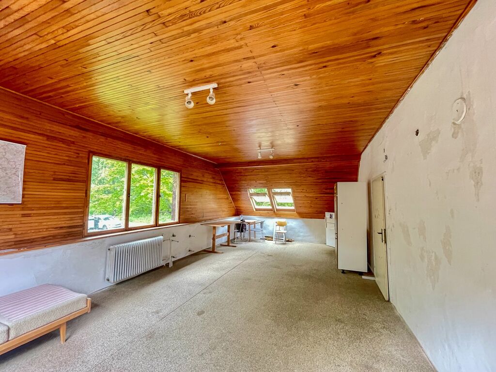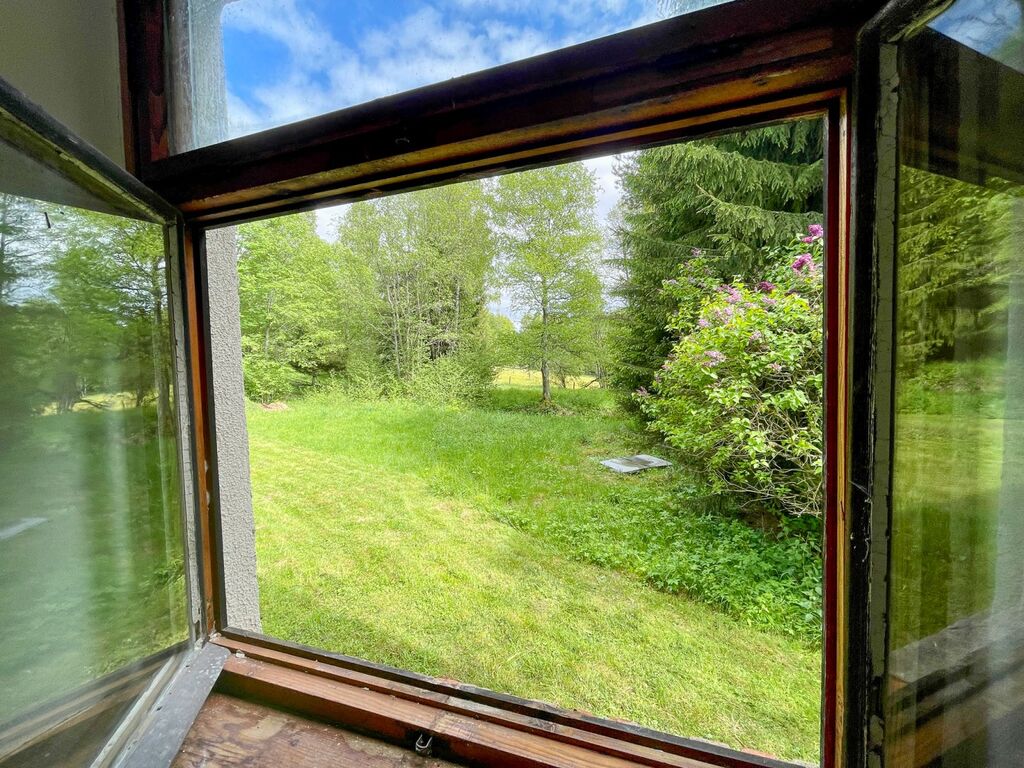 Chalupa je zasazena do malebné šumavské krajiny, kde se dokonale snoubí klid a příroda. Okolí domu tvoří zahrada trojúhelníkového tvaru, která se plynule vine kolem chalupy a dává jí jedinečný charakter. Tato zahrada, obklopená navazujícími lesy, zajišťuje naprosté soukromí a hluboký kontakt s divokou přírodou. Vzrostlé stromy podtrhují její polohu na samotě a vytvářejí idylické venkovské prostředí ideální pro relaxaci a outdoorové aktivity. Na zahradě se navíc nachází parkoviště a zastřešený skladovací prostor pro zahradní nářadí, kola a podobné vybavení.