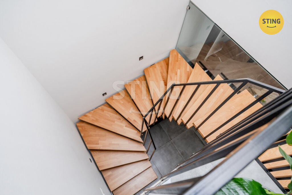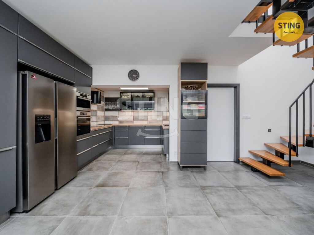 Interiér nemovitosti o užitné ploše 134 m² je promyšlený do posledního detailu. V přízemí vás přivítá prostorný vstupní prostor s vestavěnými skříněmi a dostatkem úložného prostoru. Otevřený obývací pokoj je propojen s kuchyňským koutem a působí velmi vzdušně, útulnou atmosféru mu dodávají moderní krbová kamna - francouzská INVICTA. Kuchyňská linka renomované značky je vybavena kvalitními vestavěnými spotřebiči a doplněna o praktické úložné detaily. V přízemí se dále nachází koupelna se sprchovým koutem a toaletou, technická místnost s pračkou a sušičkou a také přímý vstup přes portál na slunnou terasu, která láká k posezení i letnímu grilování.
