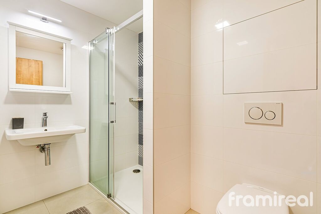 Nemovitost se nachází ve 2. patře horského domu a nabízí komfortní zázemí pro celoroční pobyt. Vstupní chodba disponuje praktickými úložnými prostory, odkud se vstupuje do koupelny se sprchovým koutem a toaletou. Obytná část spojuje kuchyňský kout s jídelním stolem, rozkládací pohovku s TV a komodu. Masivní dřevěné schodiště vede do podkrovní ložnice s manželskou postelí, komodou a druhou koupelnou s toaletou.