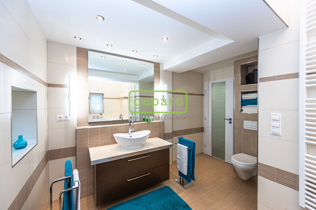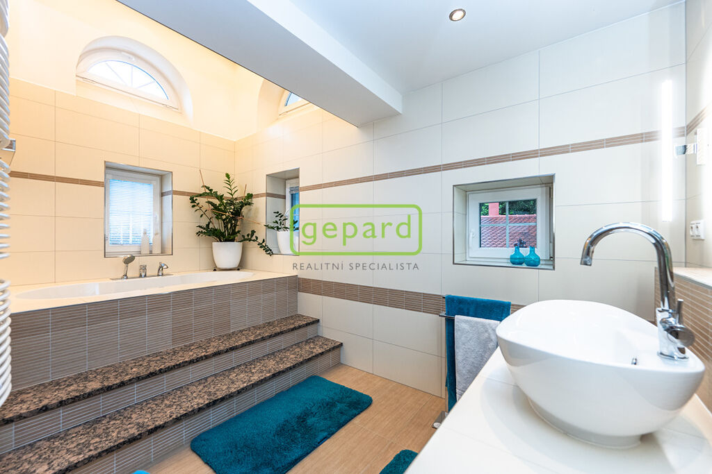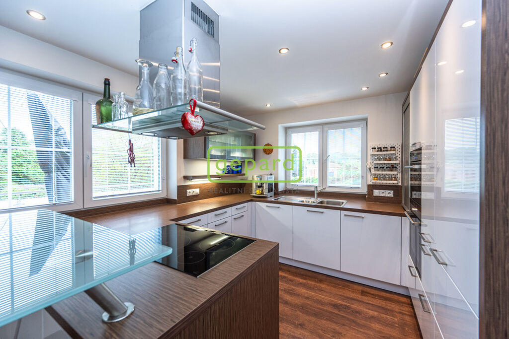 Zděný dům se zateplením, okny s trojskly, tři koupelny, tři WC, více v plánech domu. Vytápění a ohřev teplé vody s využitím tepelného čerpadla, solárních panelů a krbu s napojením na systém, podlahové topení. Sauna se sprchou a samostatným WC a výstupem na zahradu.