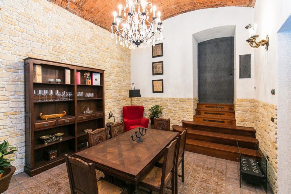 Nájemcům je k dispozici za cenu po dohodě také unikátní privátní vinný sklep v suterénu. Sklep s klenutými stropy prošel rovněž kompletní rekonstrukcí, skládá se ze dvou klimatizovaných místnosti a toalet a umožňuje jak skladování vína, tak příjemné posezení.